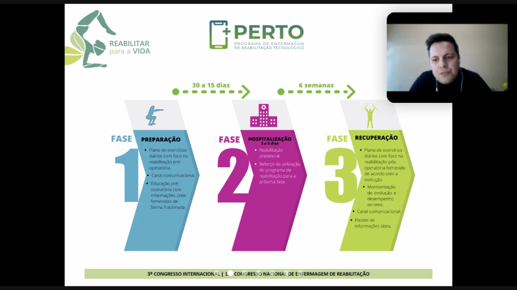 O +PERTO esteve em apresentação no 3º Congresso Internacional de Enfermagem de Reabilitação e no 12º Congresso Nacional de Enfermagem de Reabilitação, no dia 28 de janeiro de 2022, promovido pela Escola Superior de Saúde de Viseu (ESSV) através do seu corpo docente e discente do Curso de Mestrado em Enfermagem de Reabilitação.