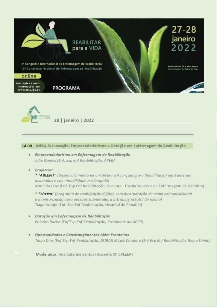 Mais informações em: https://www.essv.ipv.pt/events/3o-congresso-internacional-de-enfermagem-de-reabilitacao-reabilitar-para-a-vida/