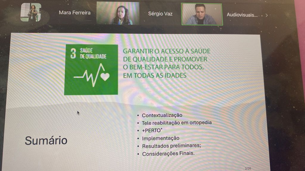 A apresentação do Enfermeiro Tiago Araújo evidenciou como o programa +PERTO utiliza tecnologias emergentes para facilitar a recuperação dos pacientes, garantindo acompanhamento contínuo e personalizado, mesmo à distância. Esta abordagem está alinhada com os objetivos da Agenda 2030, que enfatiza a importância de garantir saúde de qualidade e bem-estar em todas as idades.